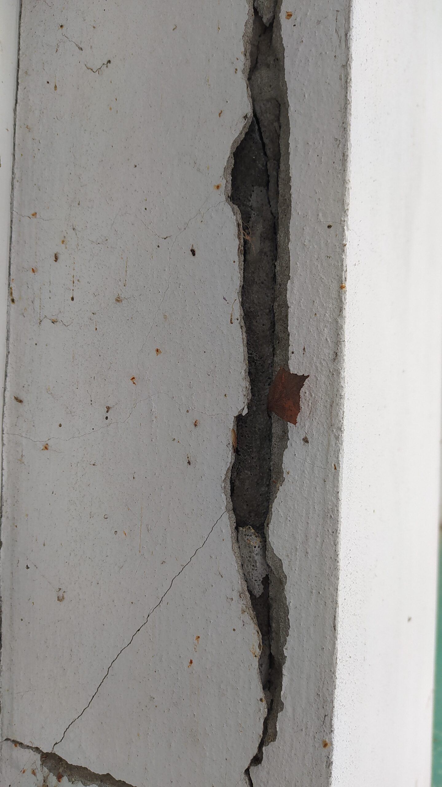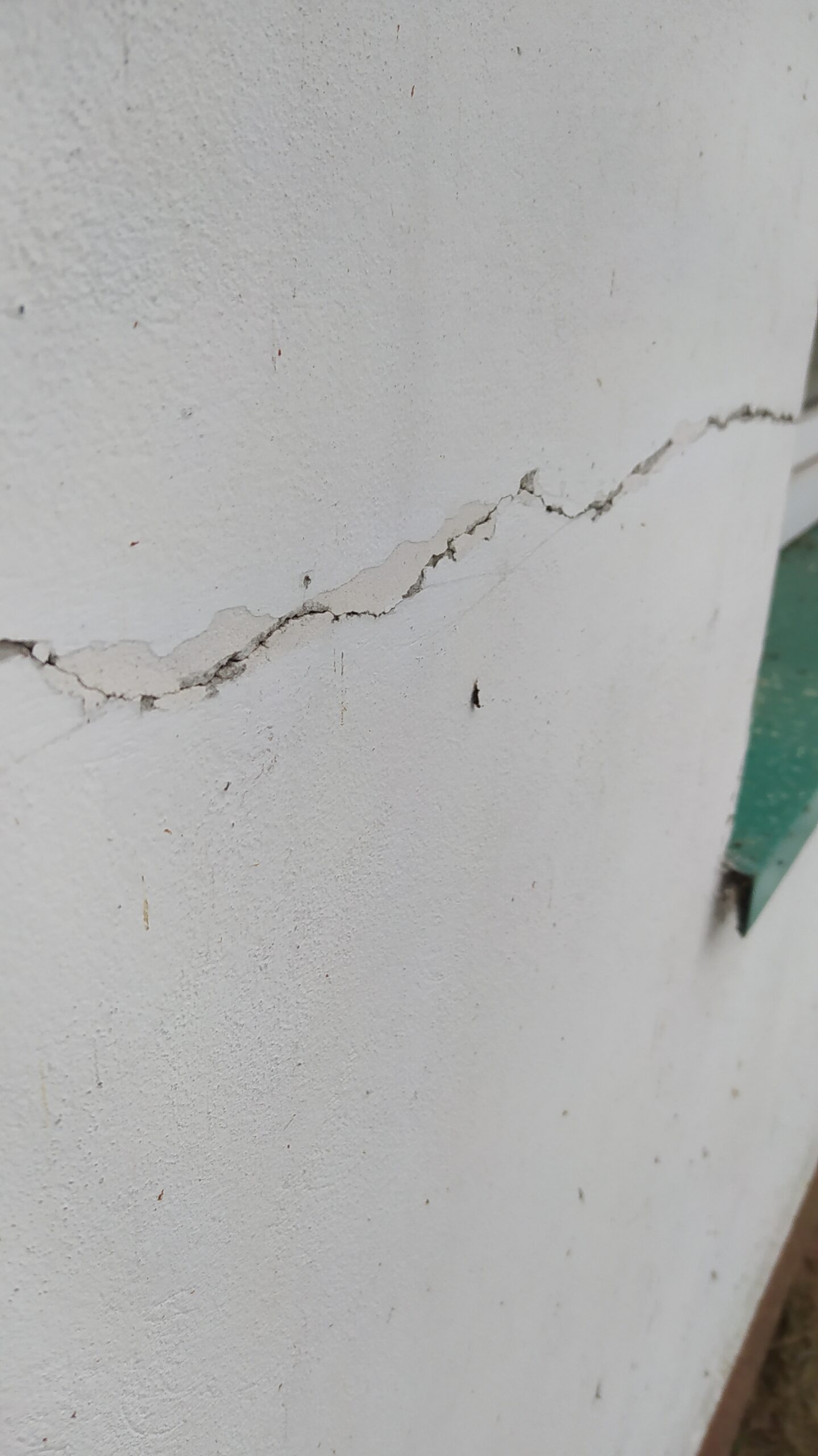 Pojawiające się rysy, szczególnie te ukośne, mogą być skutkiem pracy konstrukcji budynku. Ich przyczyną może być m.in. osiadanie fundamentów, niewłaściwe rozwiązania projektowe lub wpływ drgań z zewnątrz (np. pobliskich robót drogowych czy kolejowych).